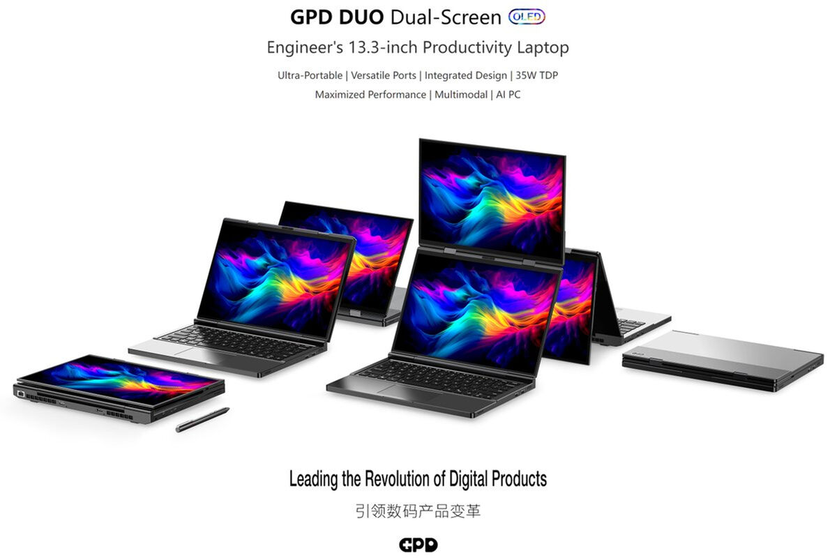 Китайская компания GPD анонсировала компактный ноутбук GPD Duo с двумя OLED-экранами. Об этом говорится на странице бренда в соцсети X (ранее Twitter).