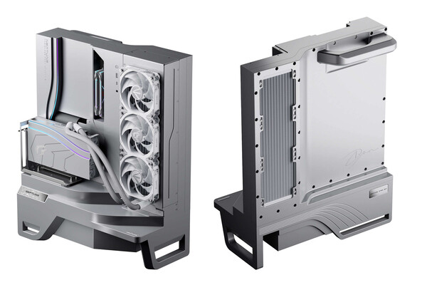 В корпус также интегрированы ручки, которые, судя по всему, нужны для облегчения доступа к внутренностям ПК при необходимости обслуживания. Все кабели от блока питания к системной плате аккуратно скрыты внутри кожуха. Насколько такое решение влияет на температуру других компонентов внутри конструкции, пока не уточняется.