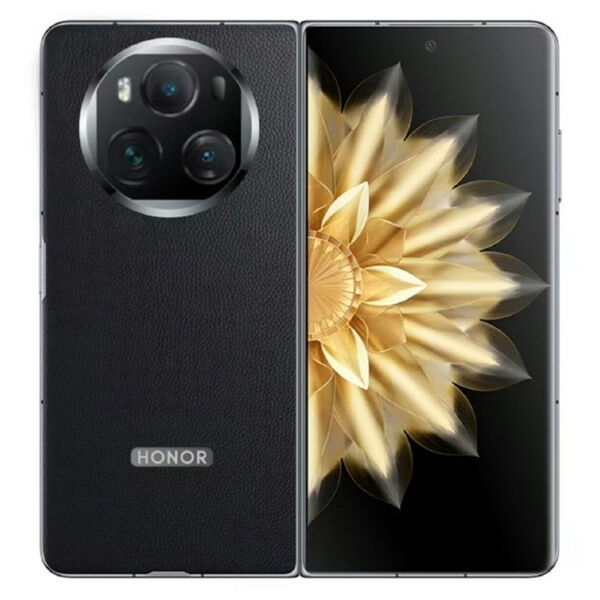По утекшей в сеть фотографии черного Honor Magic Vs3 можно заметить, что внешний экран получит скругленную с одной из сторон грань, заднюю панель из кожи. Камер в этой модели тоже три, однако Magic V3s не получит перископ. Судя по всему, это будет удешевленная версия Magic V3.