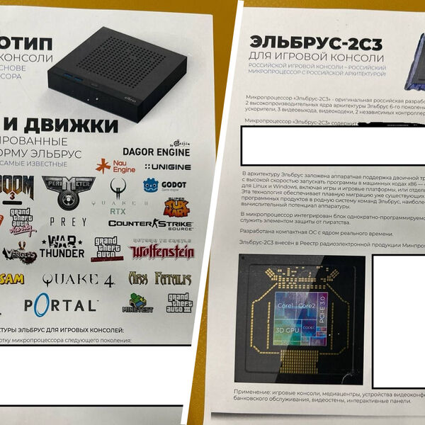 В сети появились презентационные листы с информацией о прототипе российской игровой консоли на базе микропроцессора «Эльбрус-2С3». Изображения были опубликованы в Telegram-канале «Грустный Киберпанк».
