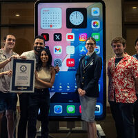 YouTube-блогер Mrwhosetheboss Арун Майни и автор канала DIY Perks Мэттью Перкс создали гигантский iPhone весом почти 200 кг и высотой более 2 метров. Устройство попало в Книгу рекордов Гиннесса как самый большой в мире смартфон.
