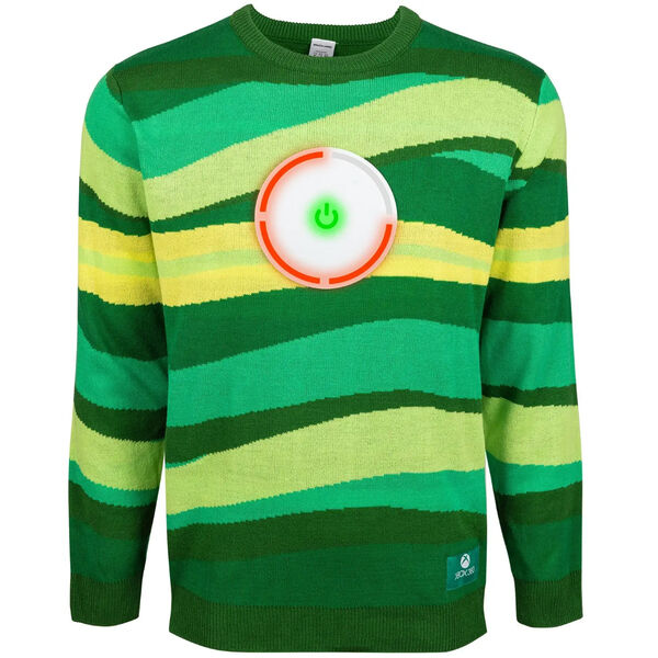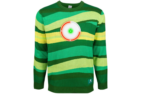 Свитер 2024 года получил название Xbox 360 Glitch Holiday. Он выполнен в фирменном зеленом цвете Xbox и украшен горизонтальными полосами. Ключевой особенностью свитера стала светящаяся зеленым кнопка питания Xbox.