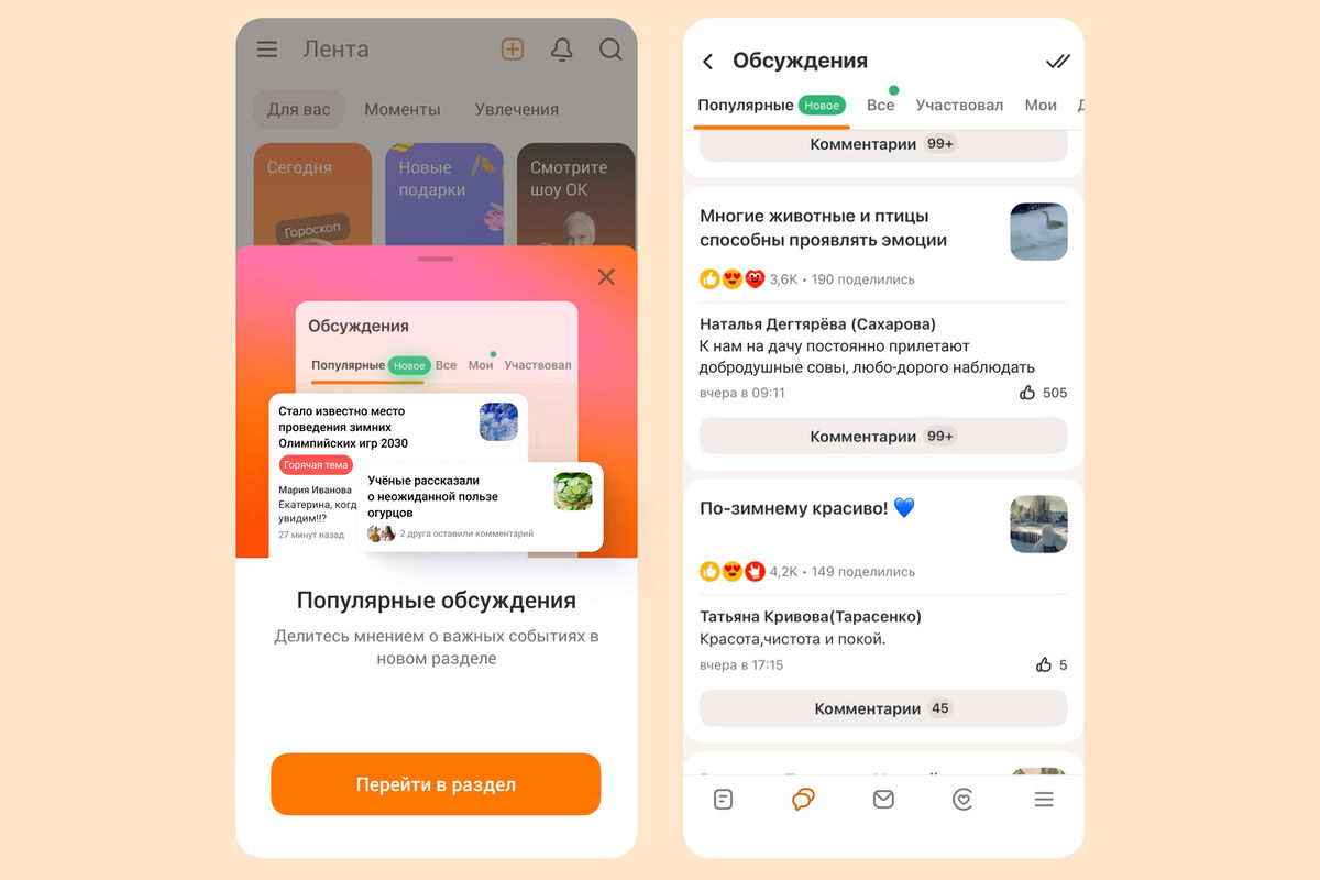 «Человек может перейти к посту и прокомментировать его, выразить эмоцию или репостнуть к себе на страницу. Вкладка «Популярные» включает актуальные посты с наибольшим количеством комментариев за несколько дней», — отмечается в пресс-релизе.