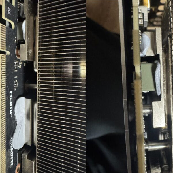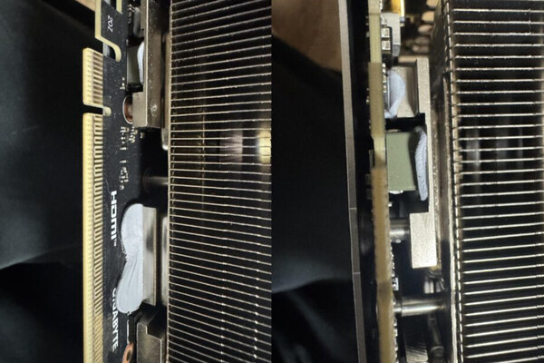 Gigabyte не предоставляла никаких особых рекомендаций относительно ориентации установки видеокарт, использующих данный термогель. Не исключено, что в конкретном экземпляре ускорителя количество нанесенного геля при сборке было избыточным или он был нанесен некорректно.