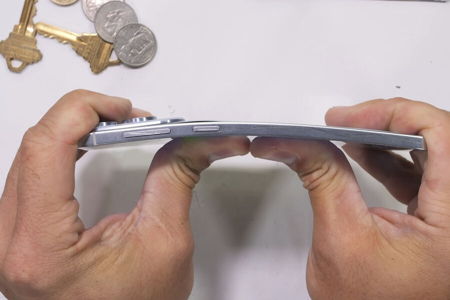 Куда более показательным оказался тест на изгиб: корпус Galaxy S25 Edge продемонстрировал определенную гибкость, при которой задняя панель частично отходит от металлической рамки. Это может нарушить герметичность корпуса. Однако экран или задняя панель, несмотря на давление, не треснули, а корпус не погнулся.