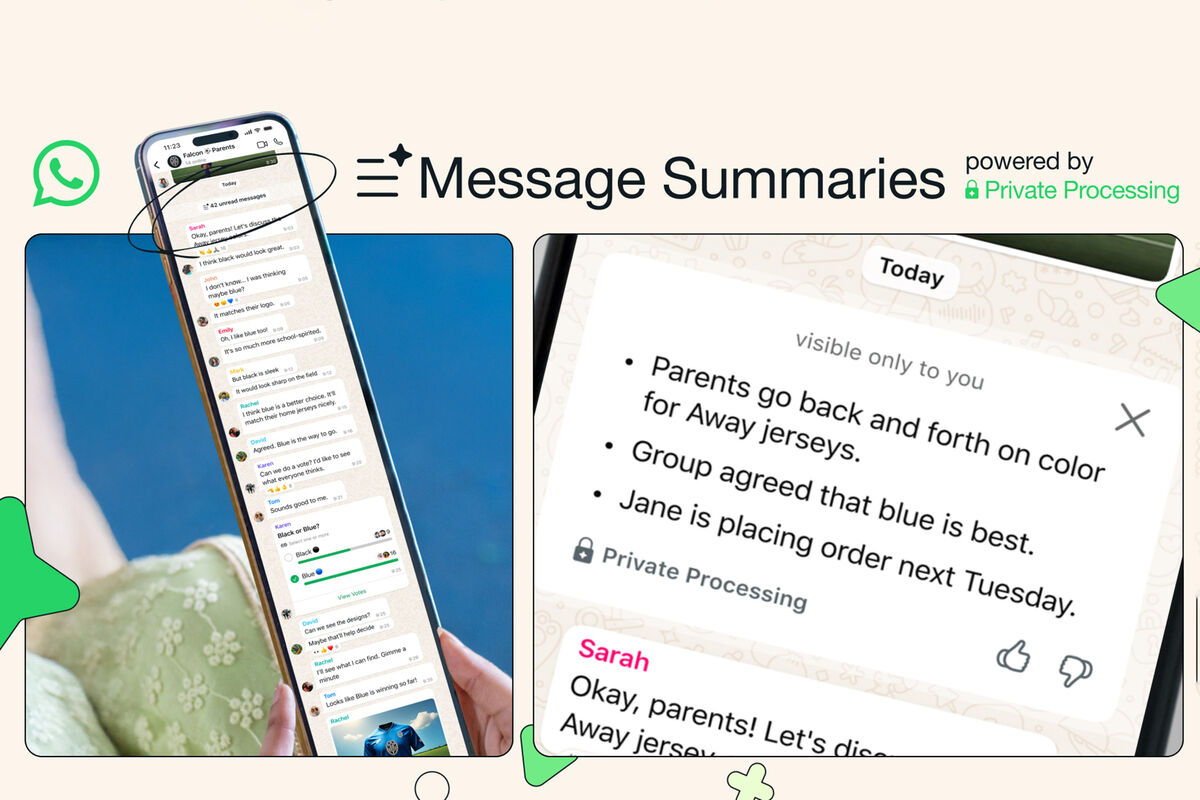 Инструмент позволяет пользователям с помощью ИИ ознакомиться с короткой сводкой, не просматривая каждое отдельное сообщение. Нововведение использует ИИ-модель Meta (признана в России экстремистской и запрещена) AI и Private Processing, которое обеспечивает локальную генерацию сводки без передачи данных третьим сторонам, включая саму Meta и WhatsApp. Также отмечается, что собеседники в чате тоже не имеют доступа к этим сводкам.