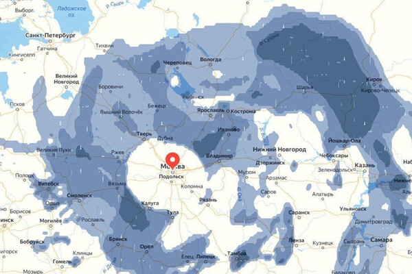 Пользователи X увидели на карте осадков защищающего Москву от дождя гиганта