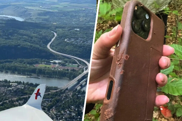 Смартфон выпал из самолета во время съемки видео над Рейнской долиной. По словам владелицы, устройство выскользнуло из ее рук на скорости порядка 110 узлов (около 200 км/ч) и упало с высоты более около 800 метров.