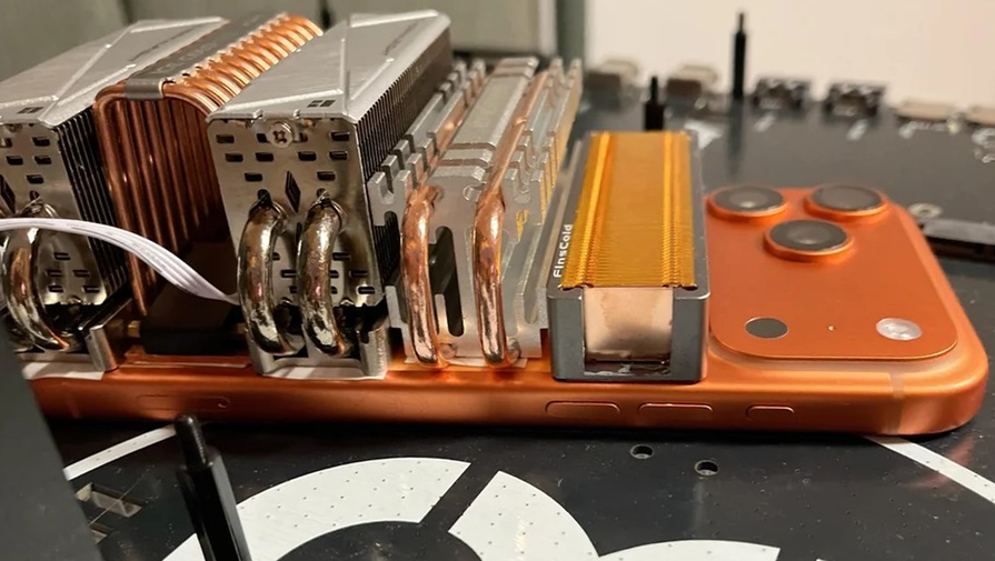 Пользователь Reddit под ником T-K-Tronix модернизировал корпус iPhone 17 Pro, установив на него радиаторы для SSD-накопителей с целью тестирования предельных возможностей устройства при высокой нагрузке.