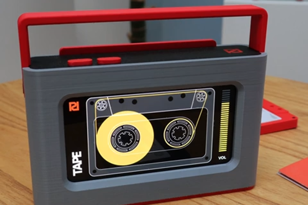 Конструкция напечатана на 3D-принтере по моделям, созданным в Rhino 3D. Корпус собирается без дополнительных опор, что упрощает производство и снижает затраты времени. Каждый картридж состоит из пластиковых элементов, акриловых вставок и стикеров, визуально напоминающих магнитные кассеты.