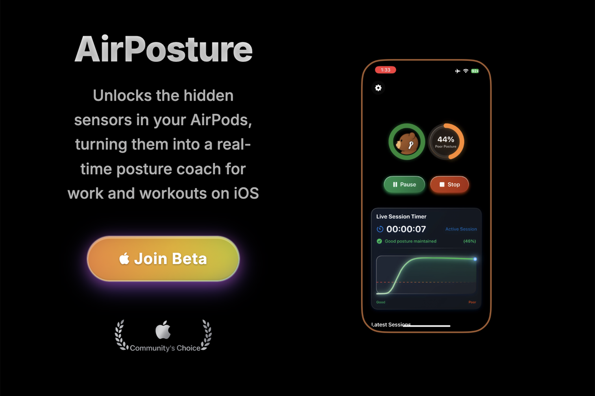 Разработчик Аллен Ли представил бета-версию приложения AirPosture, превращающего наушники AirPods в персонального тренера по осанке. Программа использует встроенные датчики аксессуаров для контроля положения тела и предупреждает владельца при нарушении правильной позы. Информация о проекте доступна на GitHub.