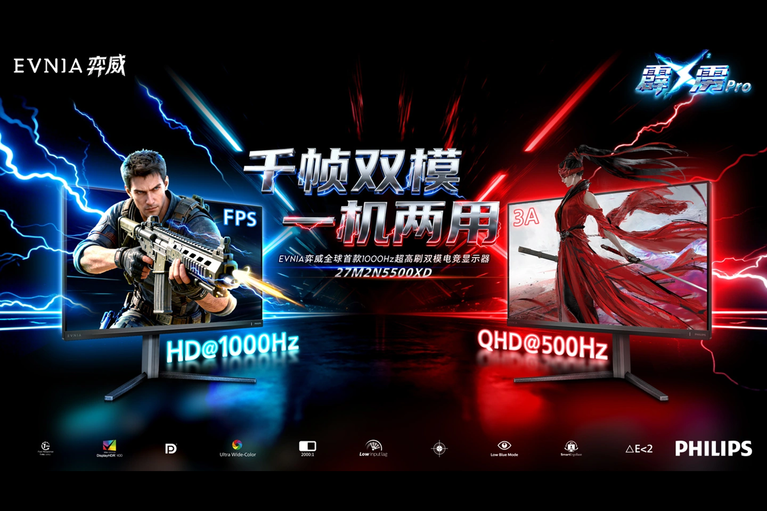 Philips Monitors официально анонсировала ENIA 27M2N5500XD — первый в отрасли игровой монитор, способный работать в двух режимах с частотой обновления до 1000 Гц. Новинка ориентирована на профессиональных киберспортсменов и энтузиастов, для которых важна максимальная скорость отклика, сообщает китайский портал ITHome.