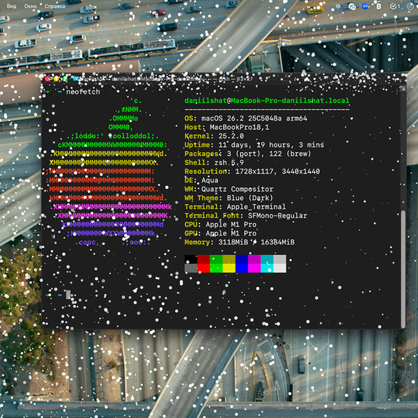 Российский разработчик Максим Гришутин (BarredEwe) выпустил для macOS приложение Snowfall, создающее эффект реалистичного снегопада на рабочем столе. Приложение написано на Swift и использует графический фреймворк Metal, что позволяет полностью перенести рендеринг анимации на GPU и минимизировать нагрузку на процессор, сообщает «Хабр».