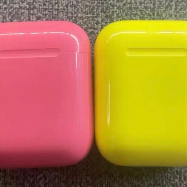 На снимках представлены первые AirPods в кейсах розового и желтого цветов. При этом внутренняя часть футляра, как и сами наушники, оставались классического белого оттенка. Расцветка напоминала варианты, предлагавшиеся для модели iPhone 5c, которая выпускалась в синем, зеленом, розовом, желтом и белом цветах.