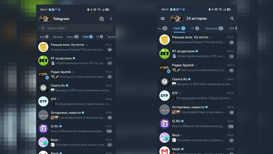 Разработчики Telegram выпустили бета-версию мессенджера с обновленным дизайном для Android. С обновлением Telegram для iOS и Android теперь стали практически неотличимы, убедился корреспондент «Газеты.Ru».