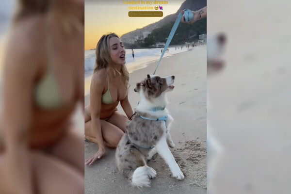Девушка Павла Дурова в бикини порезвилась с кобелем на пляже