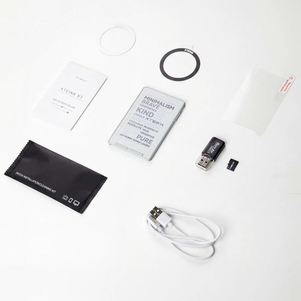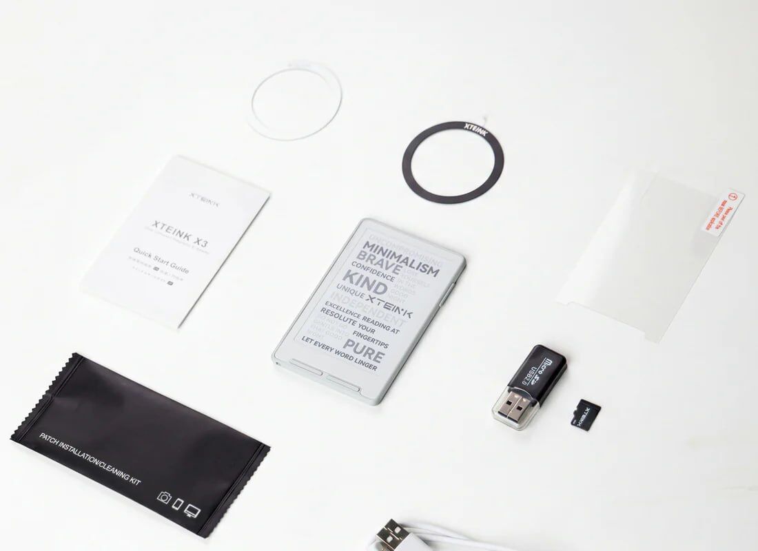 Устройство оснащено магнитным креплением, позволяющим фиксировать его на задней панели iPhone или совместимых чехлах других смартфонов. В комплект поставки входит карта памяти microSD объемом 16 ГБ. Поддерживаются основные форматы электронных книг и изображений, включая EPUB, TXT, JPG и BMP.
