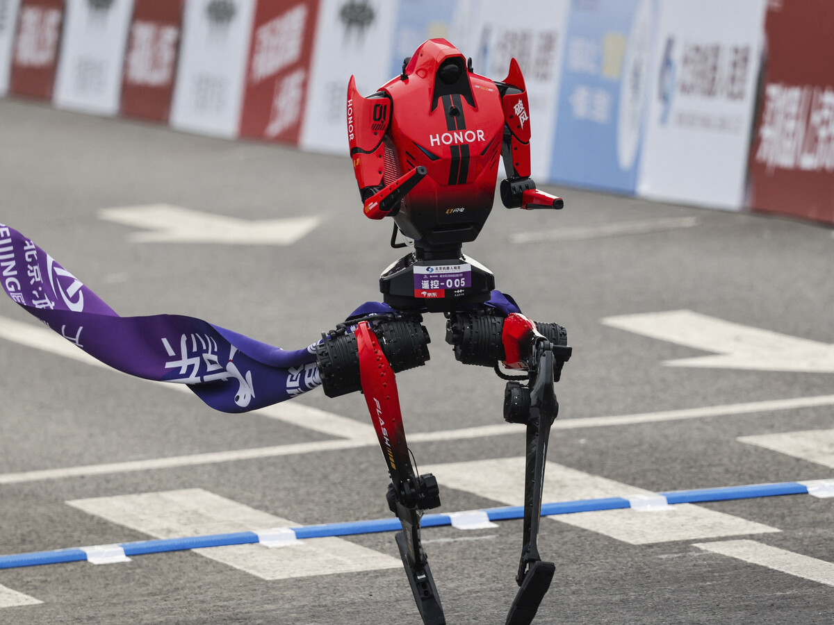 Человекоподобный робот Lightning от Honor победил на полумарафоне в Пекине и побил рекорд, преодолев дистанцию 21,1 км за 50 минут и 26 секунд. Об этом сообщает South China Morning Post.