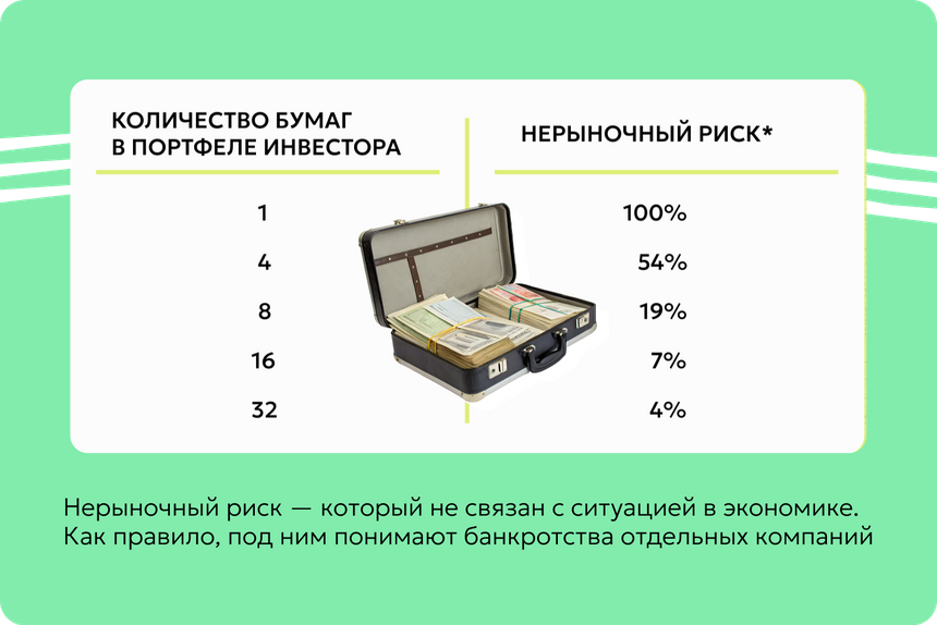 Золотое правило инвестиций — не вкладывать все деньги в одну компанию. Какой бы хорошей она ни была, ее бизнес может неожиданно столкнуться с серьезными проблемами, и котировки резко упадут. Как это случилось, например, с рядом российских компаний, когда они потеряли иностранные рынки сбыта из-за санкций. Или с Qiwi, у которого отобрали банковскую лицензию.
