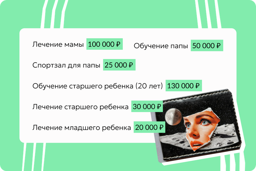 Представьте семью, в которой два ребенка. Родители в течение года потратили деньги на лечение мамы, собственное обучение папы, очное обучение старшего ребенка, секцию по плаванию младшего ребенка, а также на лечение обоих детей. Вычеты распределили между родителями для максимальной выгоды.