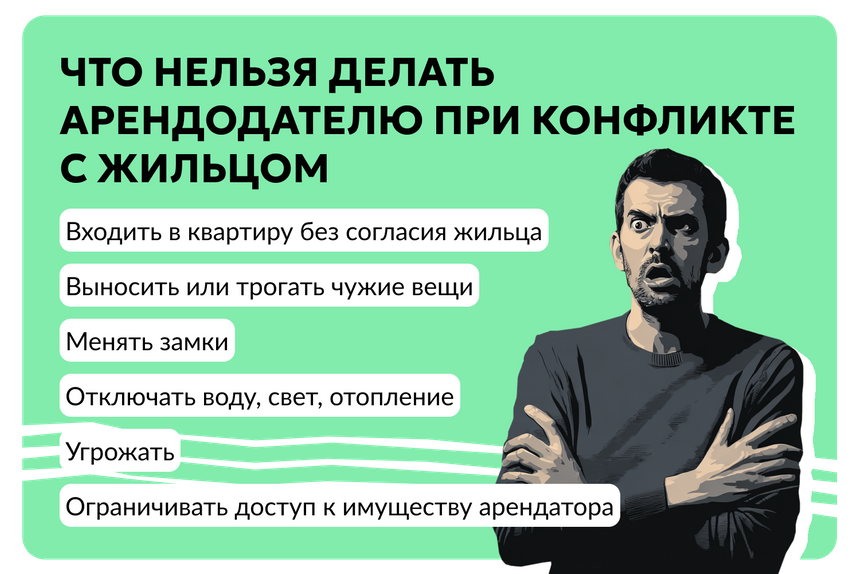 Войти в квартиру без согласия жильца. Даже если вам не платят полгода. Риторика «квартира моя — захожу когда хочу» при действующем договоре не работает, подчеркивает юрист юридической фирмы INTELLECT Семен Стукаленко.