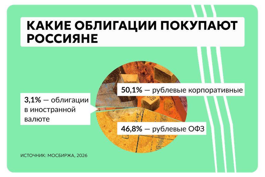 Доля частных инвесторов в обороте облигаций составила 31,3% по итогам 2025 года. В 2022-м было 10%.