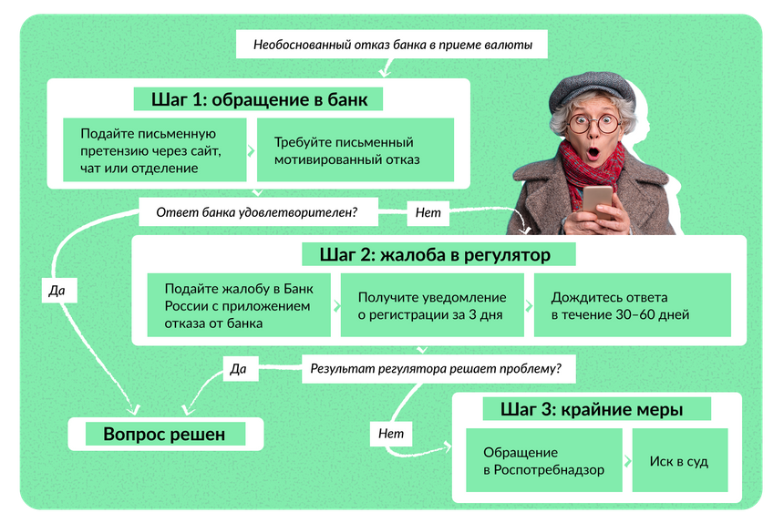 То если ваши доллары или евро — даже «беспроблемные» — имеют видимые дефекты, отказ будет правомерен.