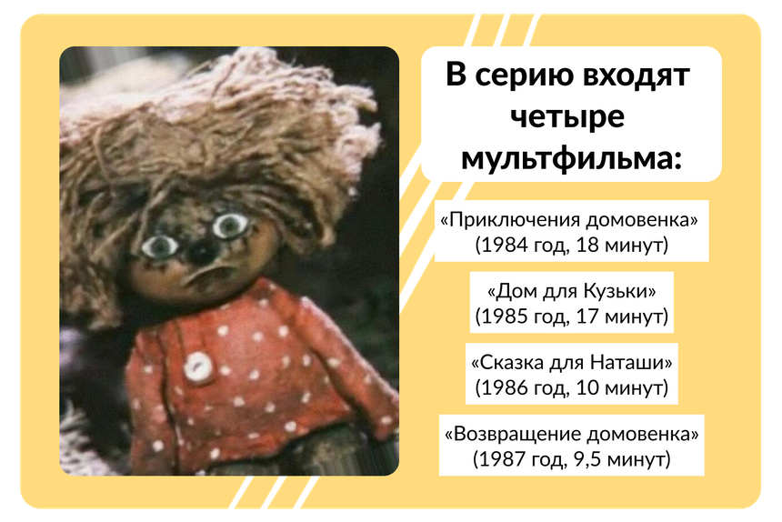 Почему стоит посмотреть. Домовенок Кузя немного напоминает Карлсона и Чебурашку. Он смешной и наивный: заявляет, что будет приглядывать за домом и Наташей, хотя на самом деле приглядывать надо за ним самим: однажды его даже украдет Баба-яга.