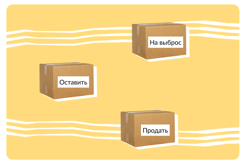 Сортируйте вещи в три коробки. То, что оставите, что может пригодиться и что нужно выбросить. Коробку с тем, что может пригодиться, унесите в укромное место. Если за полгода вам ничего в ней не понадобится — смело выбрасывайте.