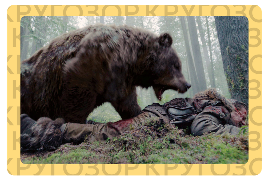 Хью Гласс остается один на один с медведицей. Зверь ведет себя непредсказуемо: он то яростно атакует, то отступает, изучая жертву, прежде чем напасть снова. Все это мы видим с точки зрения самого Гласса, прижатого к земле.