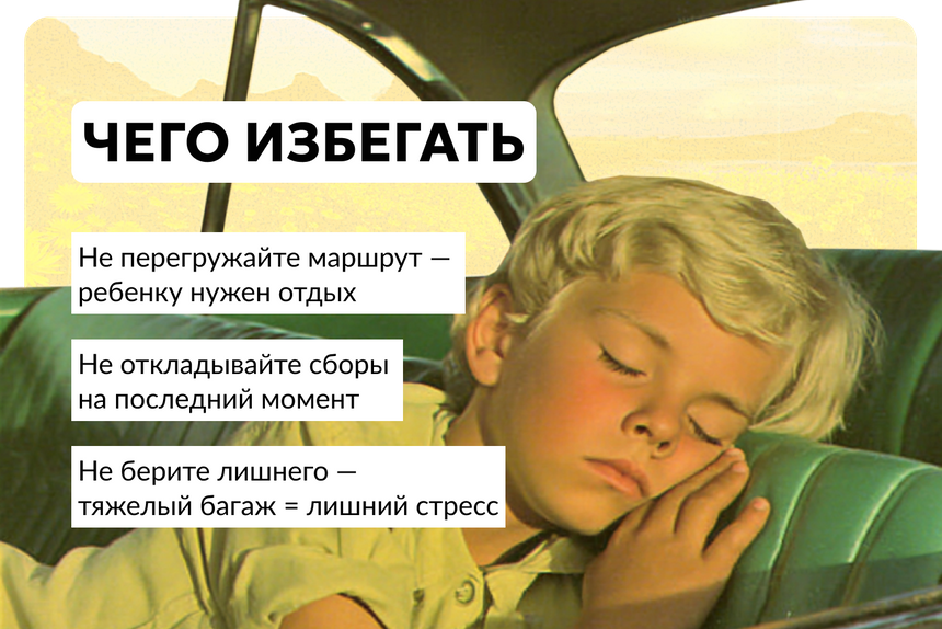 Не держите поездку в секрете — расскажите малышу заранее, куда вы едете и как туда доберетесь. Если осваиваете новый вид транспорта, посмотрите вместе мультик про самолеты или почитайте книжку. Это снимает страхи, если они есть. С более взрослым ребенком можно дополнительно спланировать часть маршрута или поискать интересные места, которые вы посетите на месте.