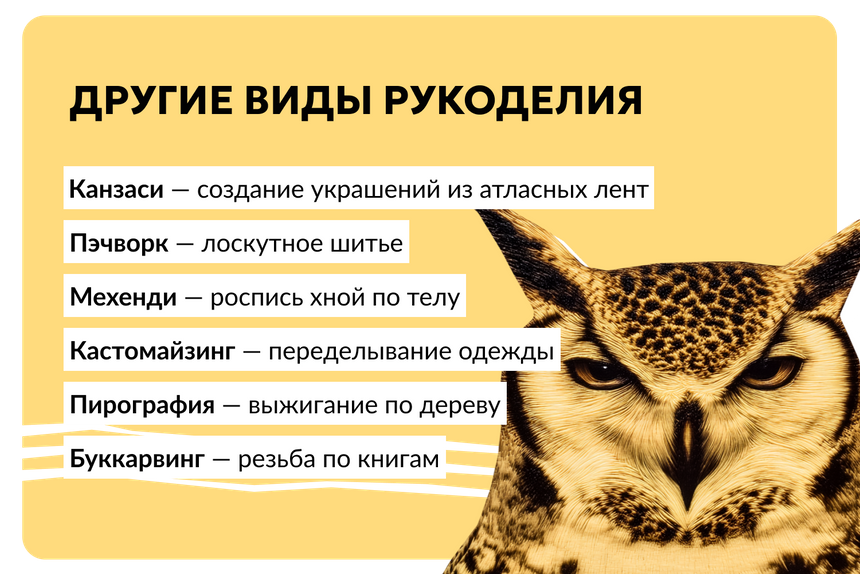 Вязать можно спицами, крючком и даже руками: так изготавливают, например, большие пушистые шарфы и пледы. К спицам и крючку также можно приобрести дополнительные приспособления вроде специальной вилки — с их помощью можно создавать особые узоры.