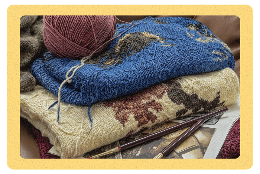 Тоже очень старый способ занять себя томными зимними вечерами. Вязанию нужно учиться, это можно сделать даже по книге, без участия посторонних людей.