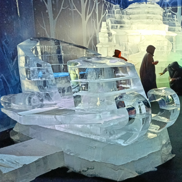 Чем интересно: в отличие от привычных новогодних сказок, «Таинственный лес» погружает гостей в фантазию с элементами научной фантастики. Огромные фигуры, напоминающие артефакты древних или внеземных цивилизаций, вырезаны из снега, подсвечены и выглядят особенно футуристично на фоне северной зимы.