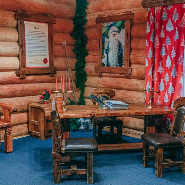 Терем Деда Мороза (где можно посетить кабинет Снежного совета, мастерскую для упаковывания подарков, спальню и так далее).