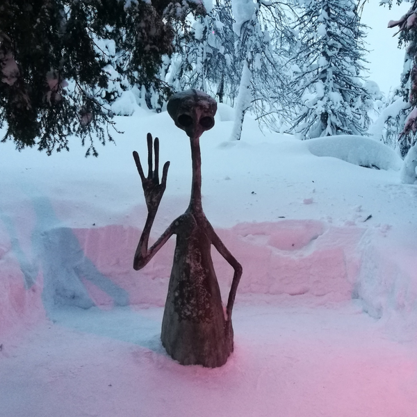 Странные скульптуры в парке появились не просто так — выбор художественных оформителей продиктовала концепция. Согласно «легенде», в арктическом лесу упала летающая тарелка, и с тех пор он такой.