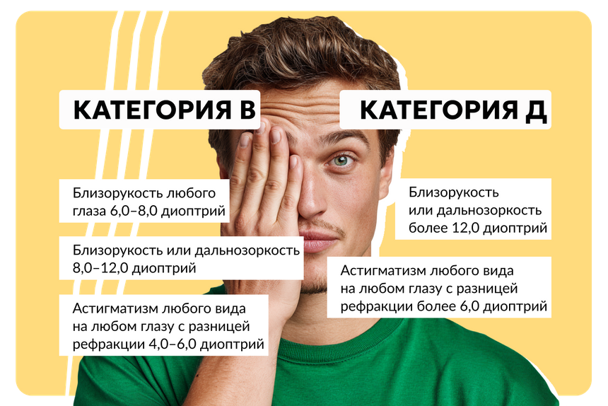 | A3 | Есть небольшие проблемы со зрением | Росгвардия, химические, ракетные |