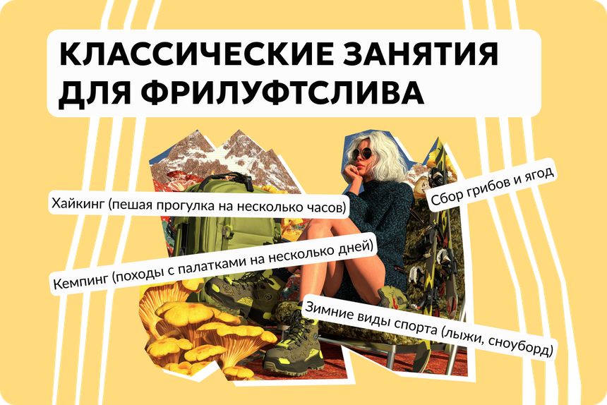Фрилуфтслив — это не изнуряющие походы, он не связан с экстремальными видами спорта (хотя вам ничего не мешает совместить оба занятия). Это естественное движение: ходьба, прогулки на лыжах, сбор хвороста, игры с детьми на свежем воздухе и многое другое.