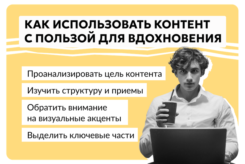 Руководителю важно поддерживать огонь креатива в команде. Например, можно проводить встречи под условным названием «Я нашел», где каждый делился тем, что его впечатлило в контенте и почему это кажется эффективным.