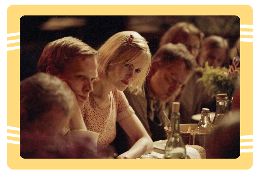 О чем фильм: действие фильма разворачивается в 1930-х годах. Главная героиня с таинственным прошлым по имени Грейс, спасаясь от преследователей, находит убежище в маленьком закрытом городке Догвилль. Он находится где-то в Скалистых горах на границе США и Канады.