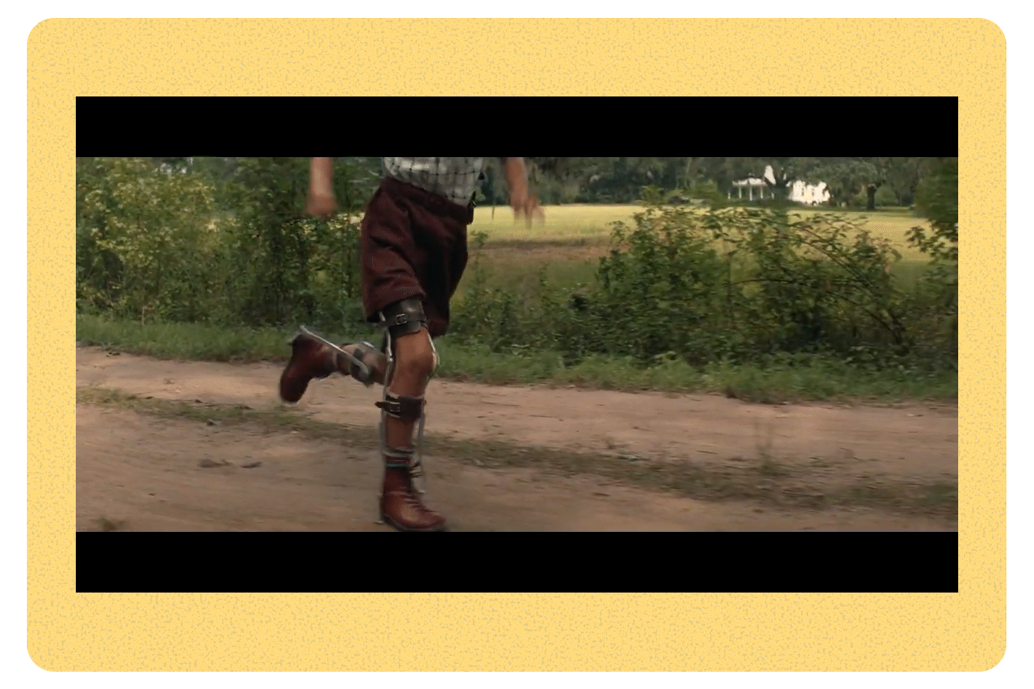 Да, с теми самыми ограничителями на ногах. В итоге «оковы» начинают разваливаться в процессе. Форрест будто убегает от своей инвалидности.