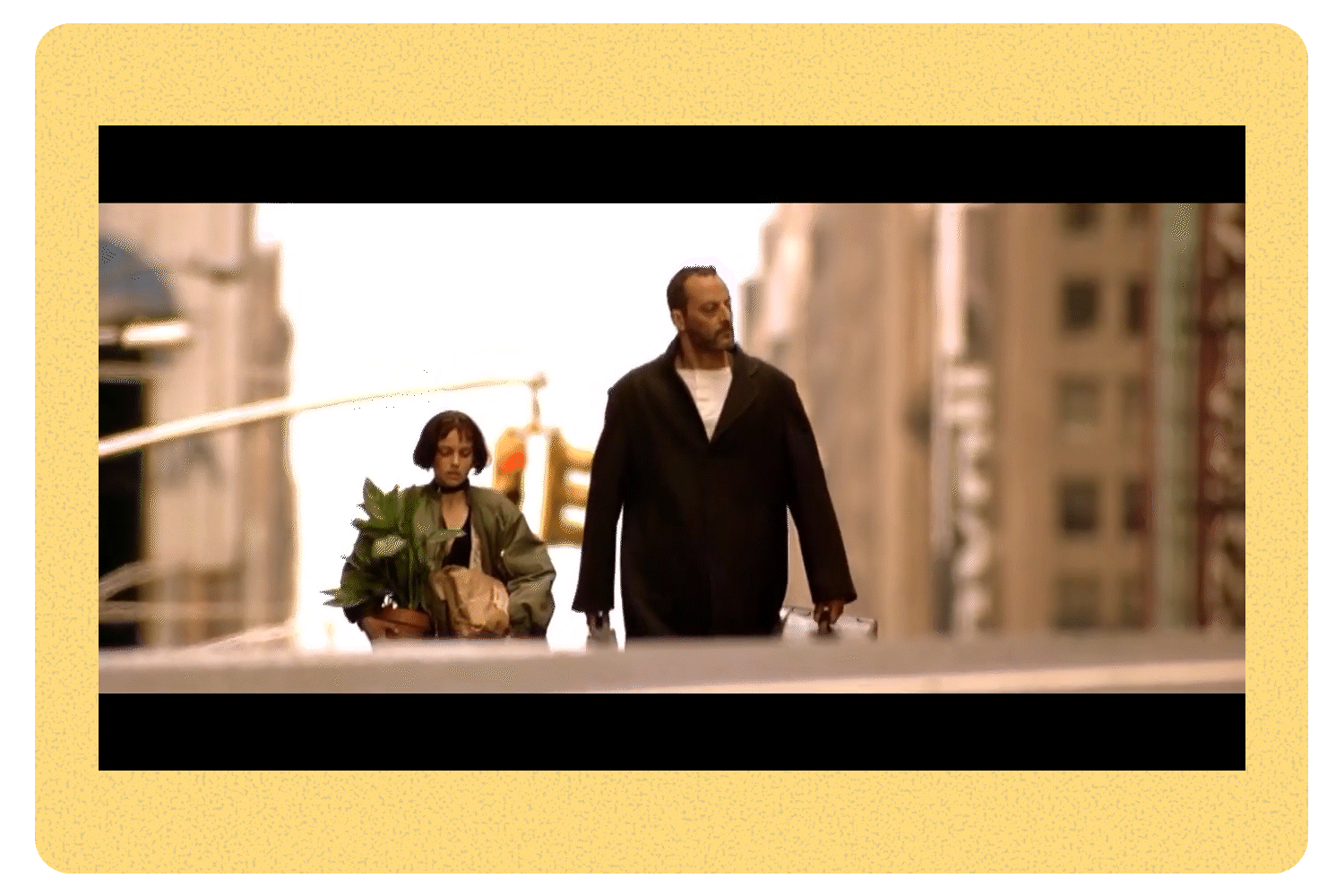 Один из известных кадров фильма — идущие Леон и Матильда с его комнатным цветком в руках.